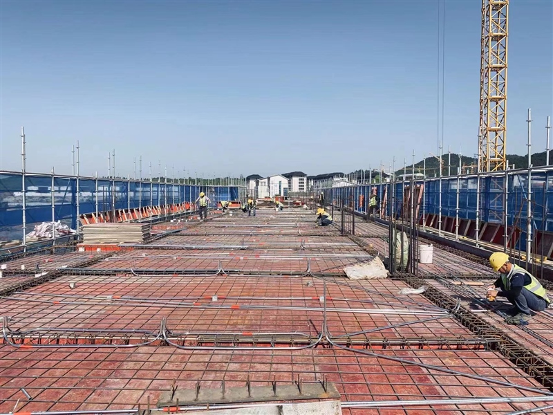 在高級技工學校項目現場,建筑工人們正在各自負責的區(qū)域緊張而有序地工作,有的負責綁扎鋼筋,有的負責混凝土澆筑,有的負責模板支架……各類機械作業(yè)聲轟鳴不斷,呈現出一片繁忙景象。
