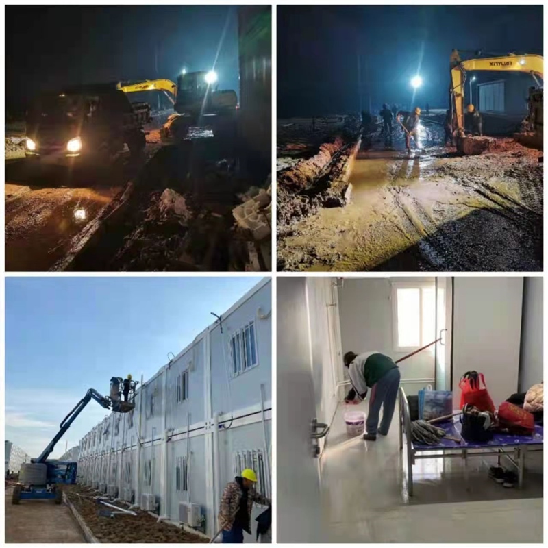 截至2月20日,準(zhǔn)備區(qū)折疊房、緩沖區(qū)活動板房、隔離區(qū)打包房、污水處理點(diǎn)用房已全面安裝完成,室內(nèi)水電、家具、電器安裝近尾聲,室外附屬工程進(jìn)入最后修補(bǔ),隔離點(diǎn)項目保潔工作正在加班加點(diǎn)進(jìn)行。盡管有無盡的疲憊,但各參建方都毫無怨言,鏟泥漿、沖洗道路,清理垃圾……這些看似平常的工作,在這一刻顯得尤為神圣且自豪。