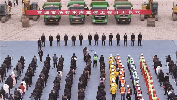 儲(chǔ)濤在講話中指出,宣城市湯村水庫(kù)主體工程開工建設(shè),既是全省治水工作的一件大事,也是宣城市經(jīng)濟(jì)社會(huì)發(fā)展中的一件盛事。各相關(guān)部門和承建單位要強(qiáng)化責(zé)任擔(dān)當(dāng),科學(xué)規(guī)范施工,積極應(yīng)用新技術(shù)、新設(shè)備,同步開展數(shù)字孿生建設(shè),注重人文和工程相結(jié)合,努力將湯村水庫(kù)打造成彰顯水科學(xué)、傳承徽文化、展示宣城獨(dú)特魅力的新名片。省水利廳將一如既往地支持宣城水利改革和發(fā)展,齊心協(xié)力、開拓奮進(jìn),努力把湯村水庫(kù)建設(shè)成放心工程、滿意工程和精品工程,為奮力譜寫中國(guó)式現(xiàn)代化安徽篇章作出水利貢獻(xiàn)。