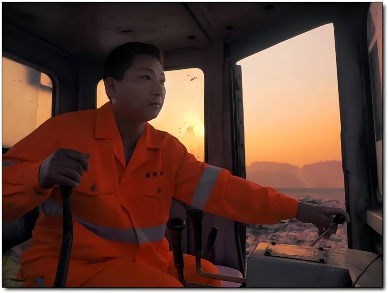 徐開鋒臨危受命,在填埋場當推土機駕駛員。每天的工作就是把400多噸的垃圾推平壓實。每到夏、秋季節(jié),臭氣熏天的垃圾引來更多的蒼蠅“光顧”,用徐開鋒同事的話說,“遠看徐開鋒就好像穿了一副‘將軍鎧甲',蒼蠅扒在他的臉上、手上、背上……”彼時的徐開鋒已經(jīng)是一名7歲女孩的父親,但為了應對繁重的工作,他每天5點鐘就騎著摩托車出了門,等到晚上回家時,女兒多半已經(jīng)睡著了!邦I(lǐng)導把我安排到這個崗位,我就要崗位上做出個樣!”,正是胸懷這份“執(zhí)拗”,他在填埋場推土機駕駛員崗位上堅持了11年。